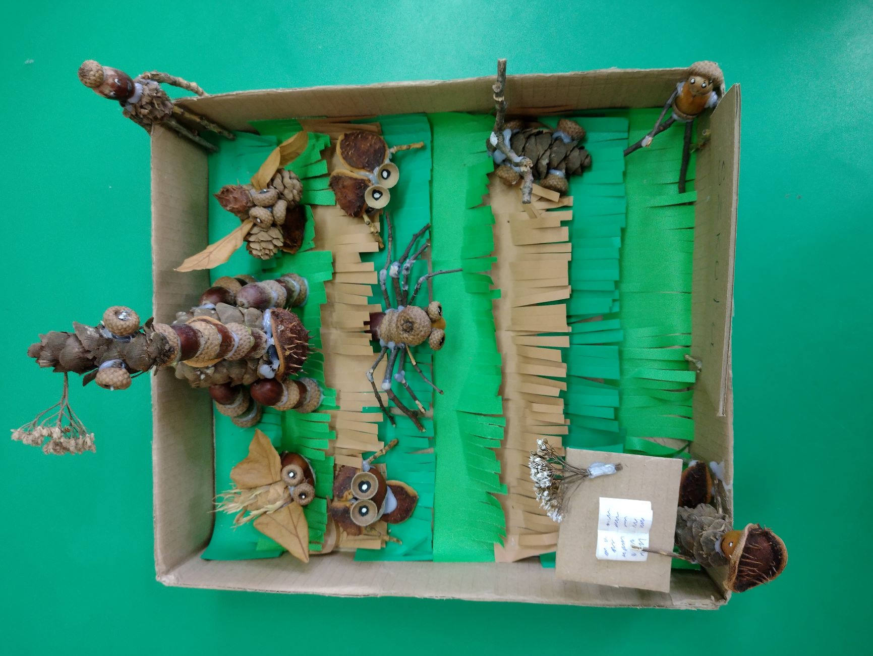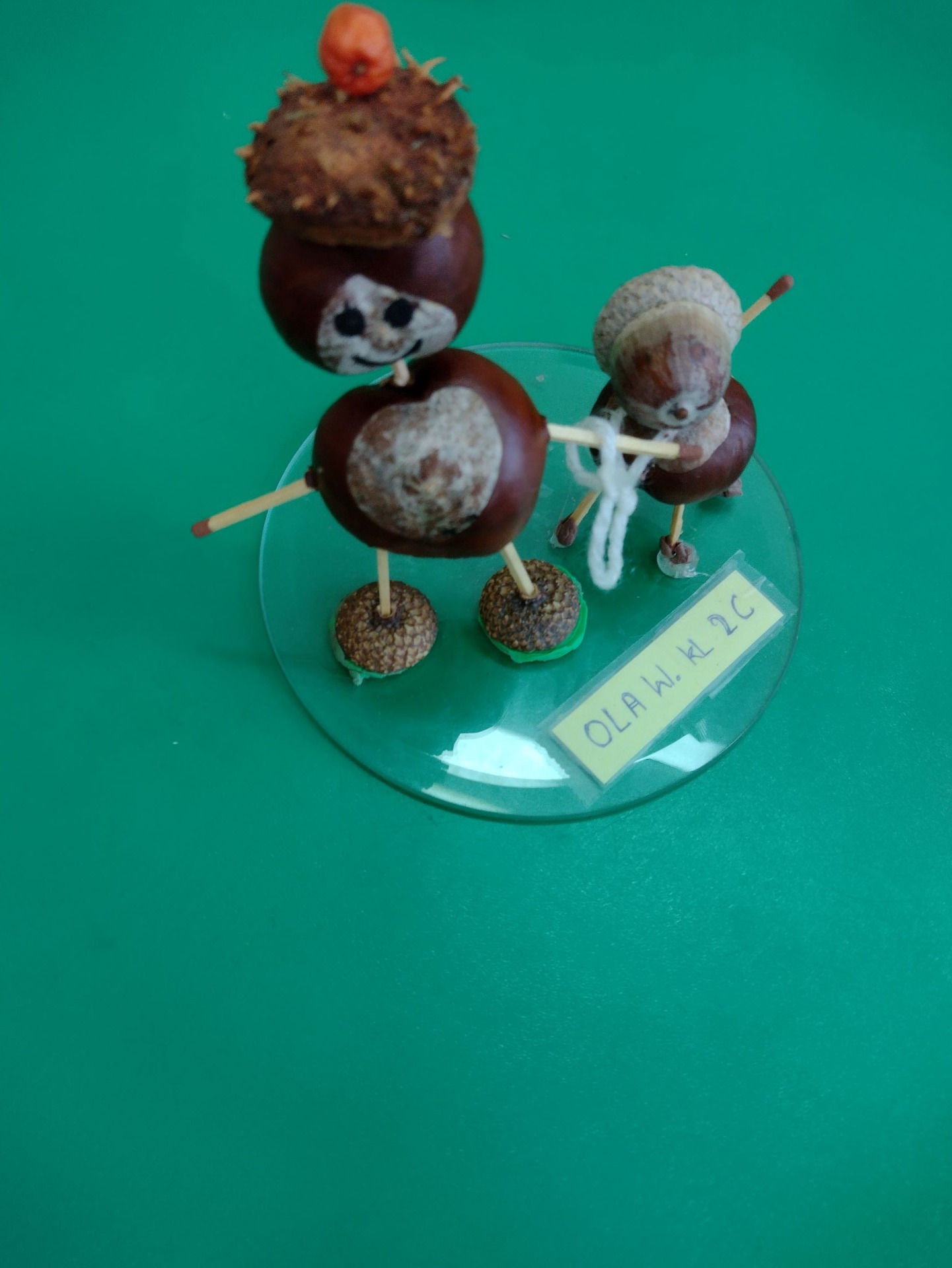 Dzieci z klas 1-3 przygotowały kompozycje przestrzenne z kasztanów, żołędzi, orzechów, szyszek, a także jarzębiny, przedstawiające zwierzęta, ludziki oraz stworki. Uczniowie wykazali się twórczością, pomysłowością i umiejętnościami manualnymi. Zwycięzcą konkursu został Bogdan z klasy 1b.
