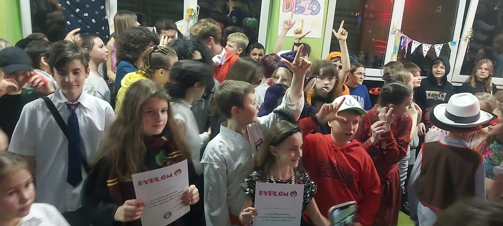 9 lutego 2023 r. w naszej Szkole odbyła się dyskoteka dla uczniów klas 4-8 zorganizowana przez Samorząd Uczniowski. Ulubiona muzyka i ciekawe dekoracje sprawiły, że wszystkie dzieci poczuły niezwykłą atmosferę i cudownie się bawiły. Tańce pozwoliły na chwilę zapomnieć o szkolnych obowiązkach. Uczniowie przybyli w ciekawych i kolorowych przebraniach, co pozwoliło wyłonić zwycięzców w konkursie na najciekawszy strój. Wszyscy bardzo miło spędzili czas i do domu wracali z uśmiechem na twarzy.