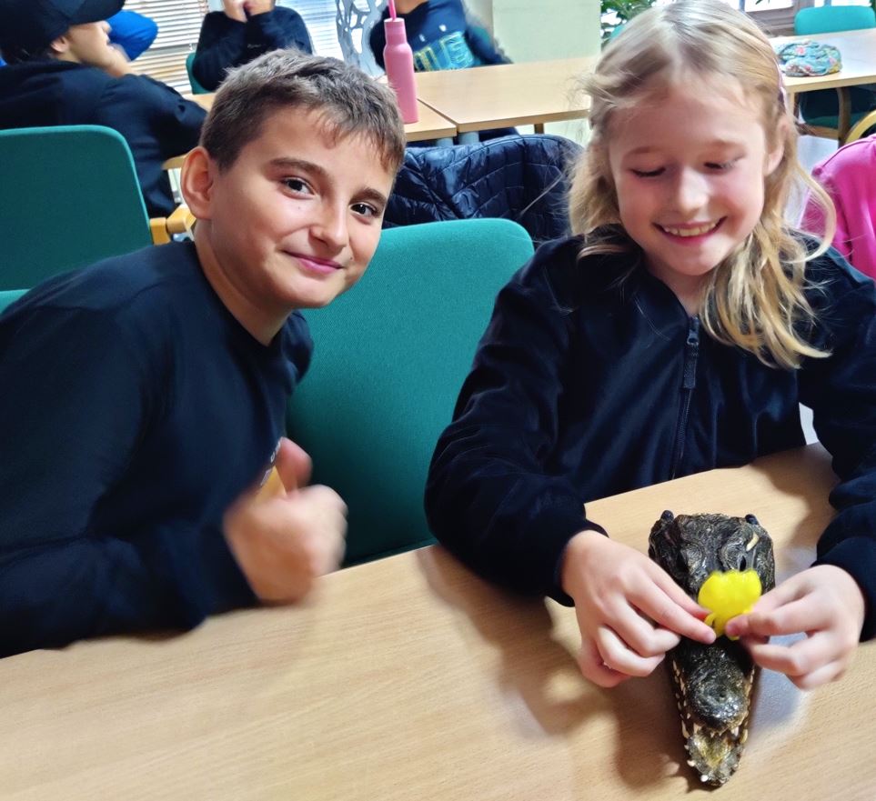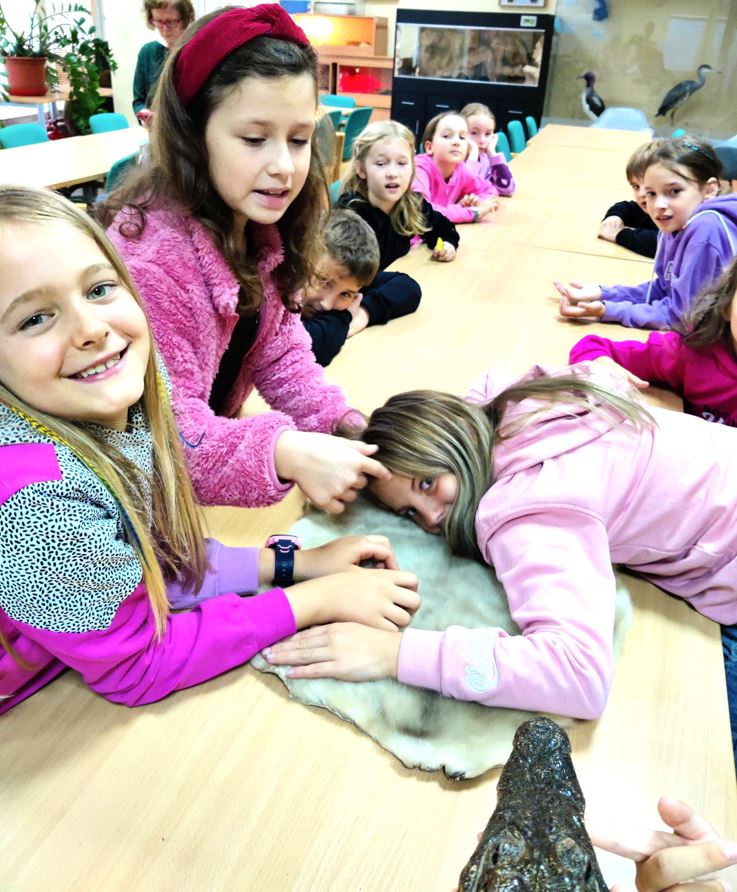 W październiku klasa 3b udała się na warsztaty pt. ,,Podwodny świat" do warszawskiego ZOO. Dla uatrakcyjnienia wycieczki, klasa udała się na nie pociągiem, co przysporzyło dodatkowych wrażeń. Podczas warsztatów dzieci obejrzały prezentację multimedialną, a także miały możliwość dotknięcia szeregu eksponatów, takich jak: szczęki rekina, rostrum ryby piły, kolce płaszczek, skóra hipopotama, futro młodej foki, pancerz żółwia i wiele innych. Zwieńczeniem warsztatów była możliwość wzięcia w ręce węża boa, który ku zaskoczeniu dzieci okazał się w dotyku bardzo delikatny.