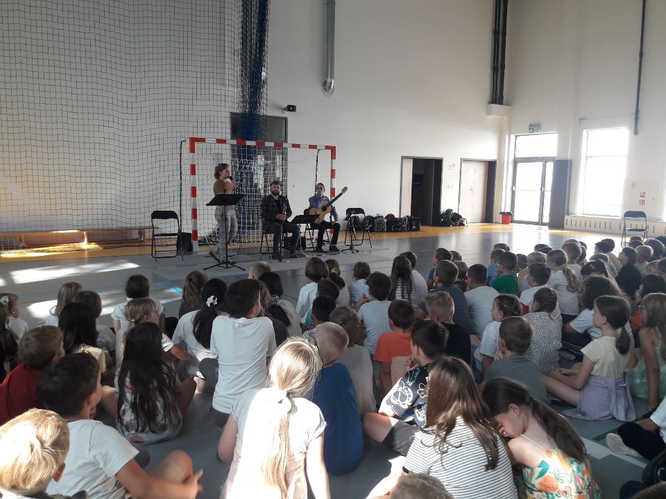 Klasy młodsze rozpoczęły udział w cyklu muzycznym prowadzonym przez muzyków Filharmonii Narodowej. Wrześniowy koncert Barcelona miasto Herkulesa przeniósł dzieci do regionu Hiszpanii, a mianowicie do Katalonii. Barcelona stolica Katalonii to jedno z najpiękniejszych europejskich miast, które od wieków przyciąga ludzi świata kultury i sztuki: poetów, pisarzy, malarzy czy kompozytorów. Nasi młodsi słuchacze odwiedzili muzyczny gród założony przez Herkulesa, a nawet stadion piłkarski. Poznali również ognistą muzykę hiszpańską. Dzieci poznały instrumenty muzyczne takie jak klarnet, gitara. Koncert był bardzo ciekawy i urozmaicany śpiewem solistki. Czekamy na kolejny w listopadzie.