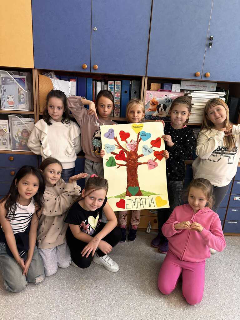 Podczas zajęć powstał plakat „Drzewo Empatii”. Uczniowie ozdobili liście swoimi refleksjami na temat empatii, dzieląc się pomysłami na to, jak można ją okazywać na co dzień.”
