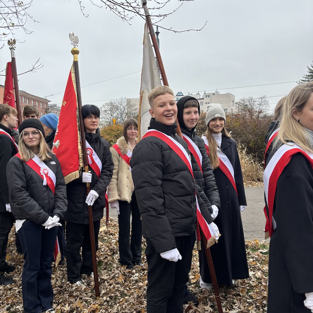 8 listopada przedstawiciele klas 7b i 6a wraz z pocztem sztandarowym pod opieką p. Grażyny Kulik i p. Piotra Janowskiego wzięli udział w dzielnicowych obchodach 106.rocznicy odzyskania przez Polskę niepodległości. Wszyscy obecni wspólnie z ochockim chórem pod dyrekcją p. Artura Backiela odśpiewali Hymn Polski oraz inne patriotyczne pieśni. W wydarzeniu uczestniczyli rekonstruktorzy z grupy edukacyjno - historycznej " Szare Szeregi", którzy wcielili się w twórców niepodległości: marszałka Józefa Piłsudskiego, gen. Józefa Hallera oraz premiera Wincentego Witosa. Ich symboliczna obecność przypomniała wszystkim uczestnikom o wielkiej odwadze i poświęceniu, jakimi wykazali się wielcy Polacy, aby odbudować po 123 latach niewoli II Rzeczpospolitą.
