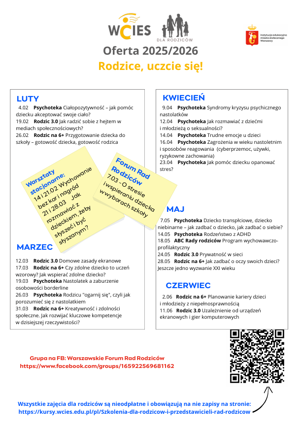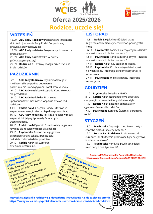 WCIESOWA OFERTA DLA RODZICÓW Zdjęcia Zobacz również APEL Z OKAZJI ŚWIATOWEGO DNIA PIERWSZEJ POMOCY AKADEMIA MEDIACJI I WOLONTARIATU - ZEGRZE 2025 PORADNIA PSYCHOLOGICZNO-PEDAGOGICZNA NR 9 ZAPRASZA... WCIESOWA OFERTA DLA RODZICÓW SZKOLNY BIEG PO ZDROWIE 2025 RAJD DO PĘCIC 2025 17 września 2025 Aktualności Wydrukuj Udostępnij Wyświetlono: 12