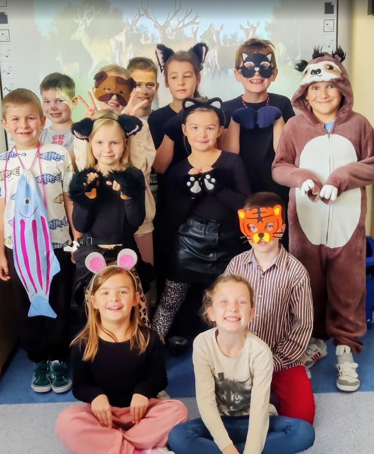 Dzieci wcieliły się w role kotków, piesków, tygrysków, królików i wielu innych zwierząt, pokazując przy tym swoją kreatywność i ogromne serce dla świata przyrody. Korytarze szkolne zamieniły się w prawdziwe zoo pełne uśmiechu, radości i dobrej zabawy!