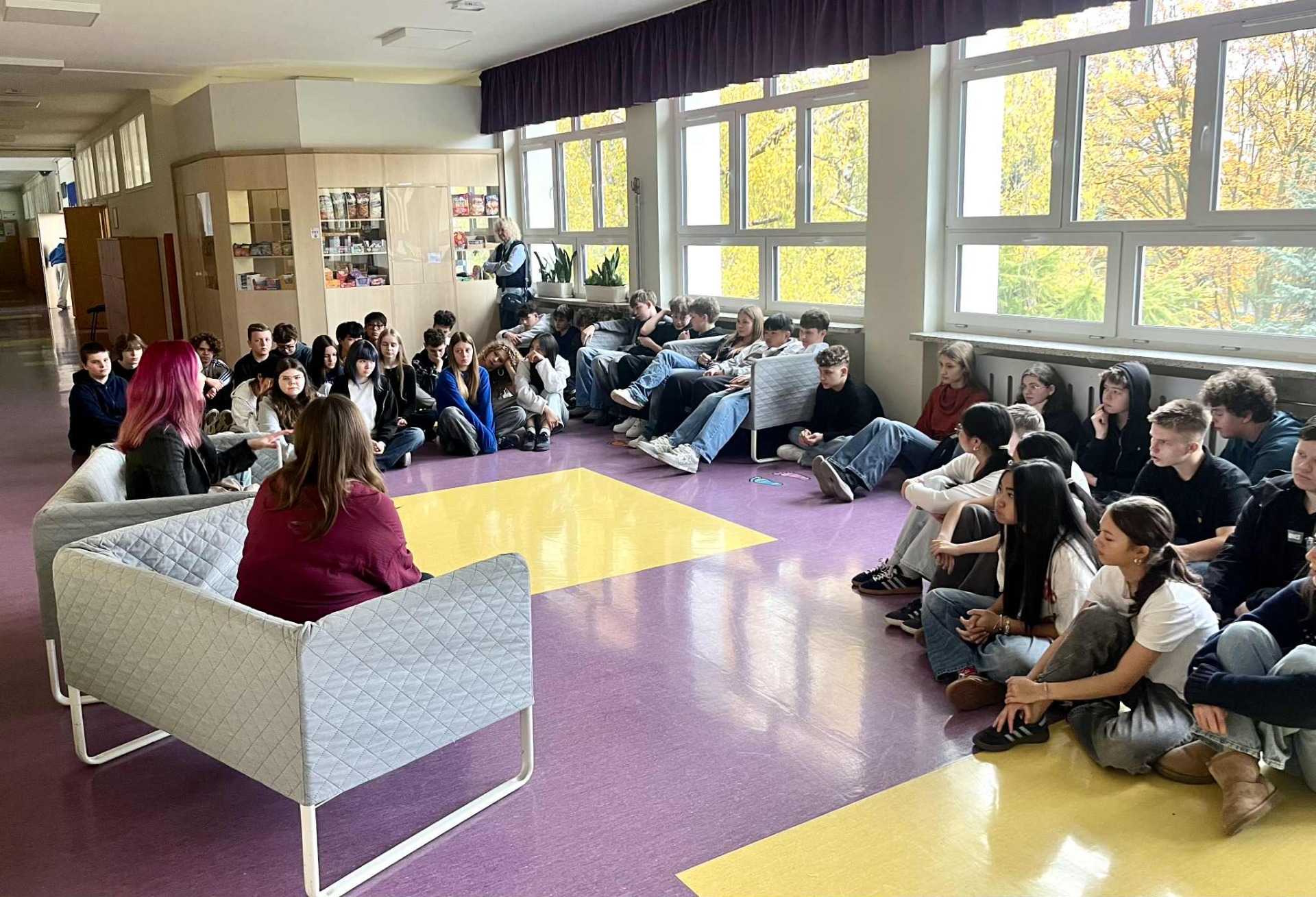 W ramach Ogólnopolskiego Tygodnia Kariery uczniowie klas ósmych odbyli 23.10. spotkanie z zawodoznawcze. Odwiedziła nas p. Julia Kochelska, koordynatorka kolegium Akademii Przyszłości Stowarzyszenia Wiosna, studentka Wydziału Nauk Ekonomicznych na Uniwersytecie Warszawskim. Pani Julia opowiedziała jak to jest studiować informatykę, jak dzięki ekonometrii można przewidywać przyszłość i co ma rachunek prawdopodobieństwa do wysokości składki ubezpieczenia auta. Porozmawialiśmy czy kierunki ścisłe są zarezerwowane dla chłopaków, czy są trudne i czy mają coś wspólnego z naukami społecznymi. Ważnym tematem rozmowy był wolontariat, co może dać młodzieży, jakie rozwija umiejętności potrzebne na rynku pracy. Zastanawialiśmy się również czy ekonometrysta to zawód z przyszłością, czy może być zastąpiony AI.