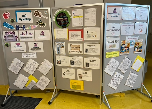 - wystawy: Sławni Dyslektycy oraz aktywności wspierające osoby z dysleksją