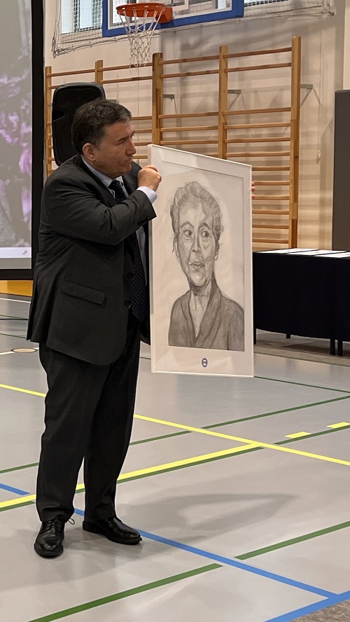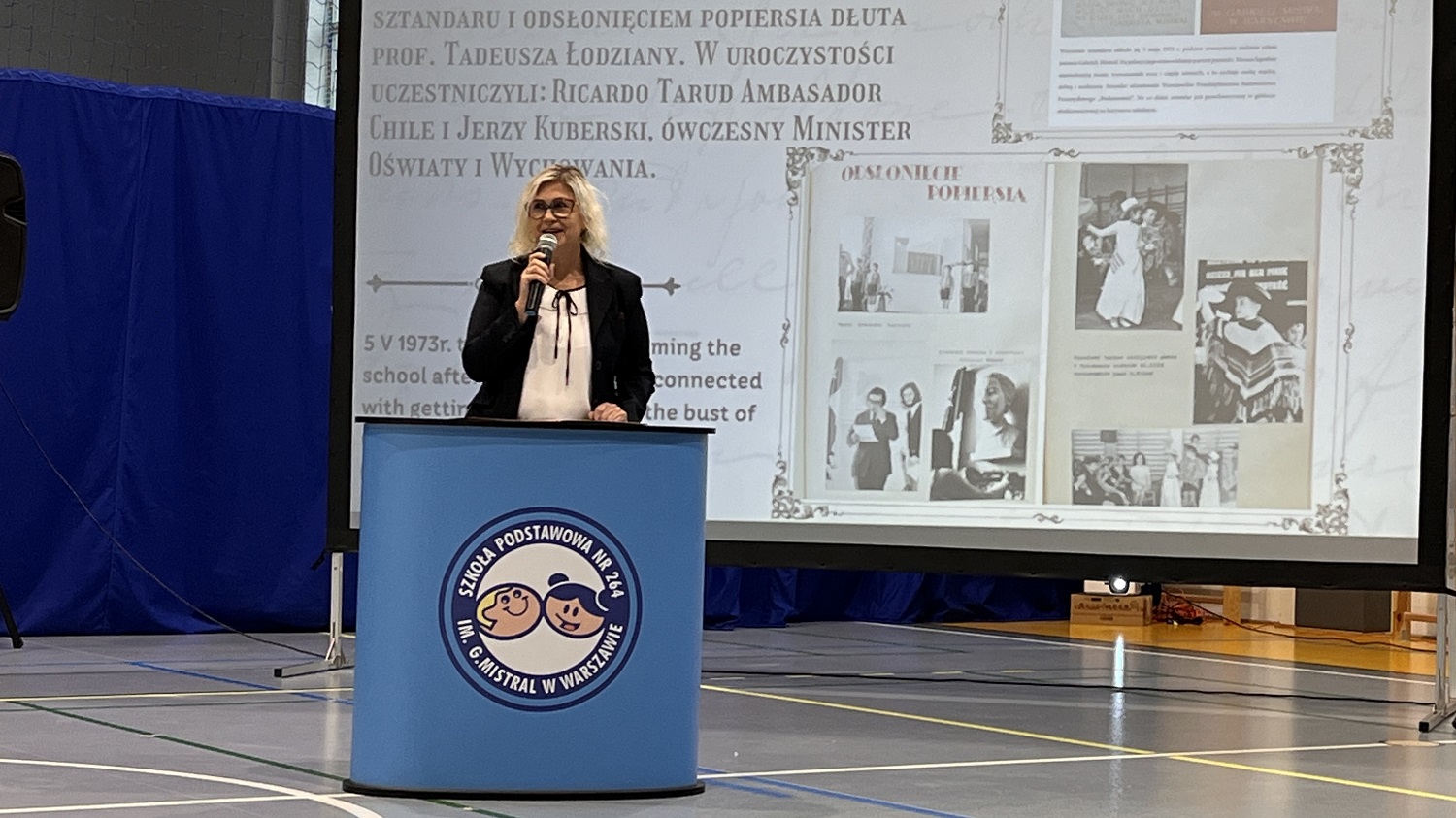 Podczas przemówienia Pani Dyrektor Małgorzata Różańska przypomniała historię wyboru Gabrieli Mistral na patronkę szkoły i podkreśliła znaczenie wartości, które głosiła poetka. Gabriela Mistral wierzyła w siłę edukacji, dobroć i miłość. Pisała o dzieciach, pokoju i nadziei: „Dzieci są nadzieją, która zawsze rozkwita.”