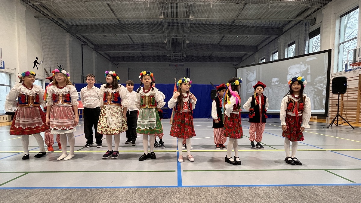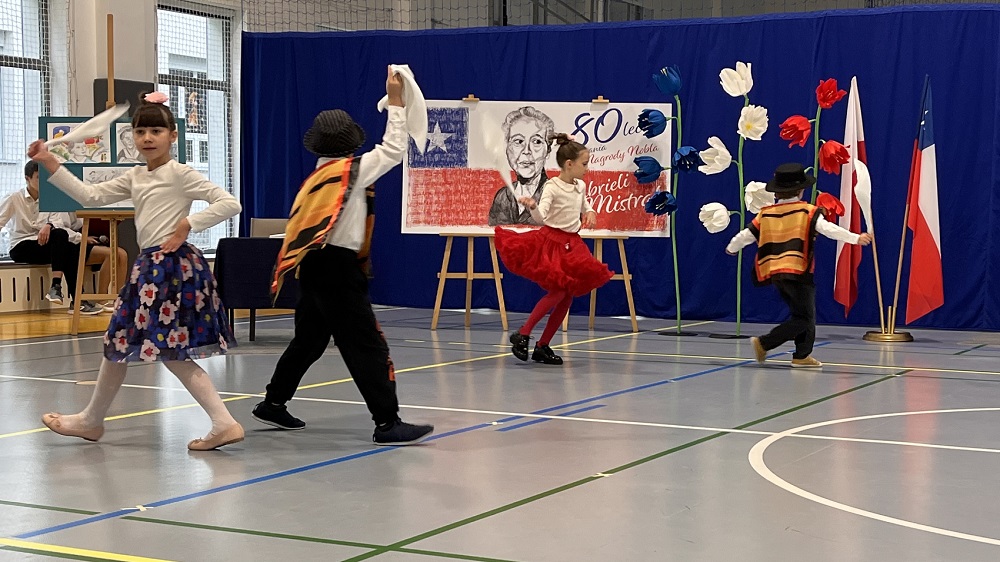 Część artystyczna dostarczyła wielu wzruszeń. Podziwialiśmy taniec ludowy Cueca w wykonaniu uczniów klasy 2a, taniec ze wstążkami w wykonaniu uczennic z klasy 8a, a na zakończenie – pełen energii Krakowiak w wykonaniu dzieci z klasy 3b.