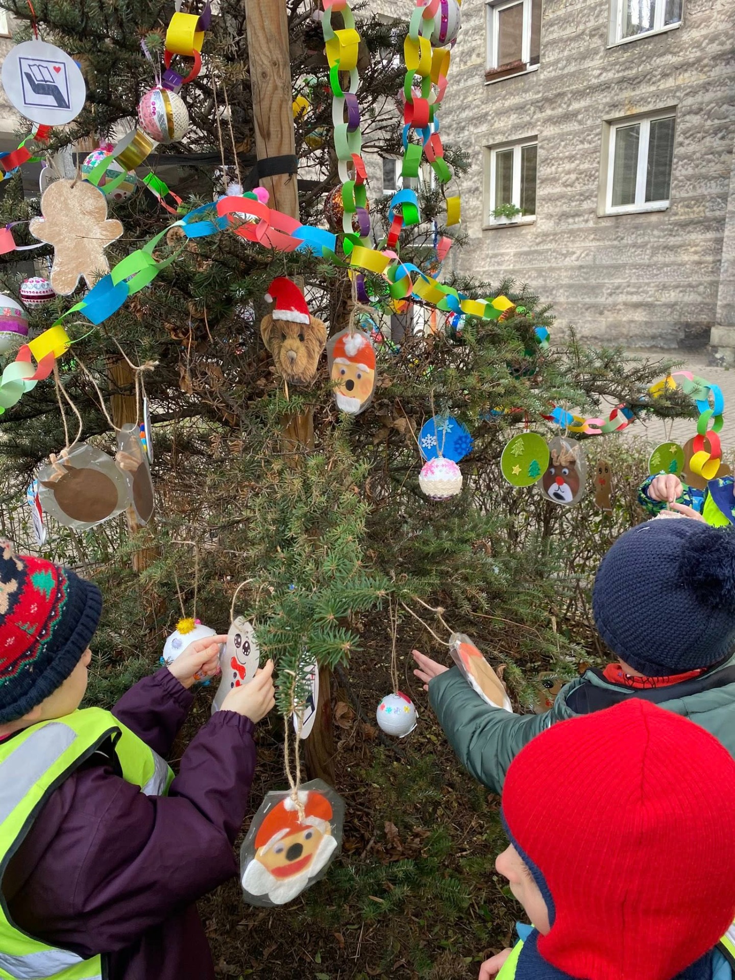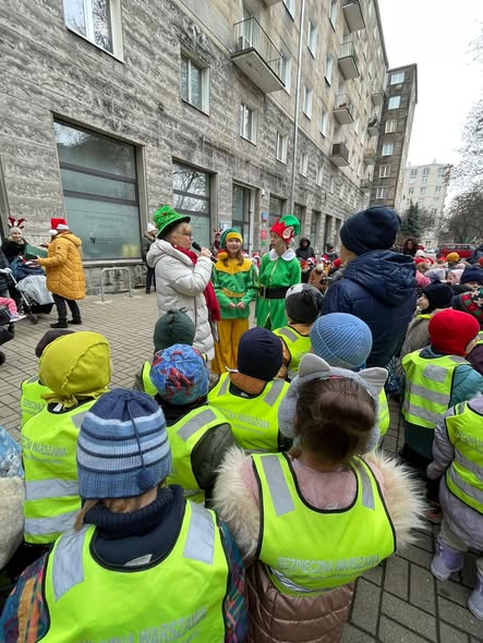 W dniu 5 grudnia 2025 roku szkolny koordynator Szkolnego Koła Wolontariatu, Ewa Wrzesińska-Kuzka, wraz z młodymi wolontariuszkami z klasy 6b oraz Panią Beatą Ertman-Podsiadło, przeprowadziły dla okolicznych przedszkoli świąteczną akcję pt. „Ubieramy choinki na Placu Baśniowym”. W wydarzeniu uczestniczyli także wyjątkowi goście – Burmistrz Ochoty Piotr Krasnodębski oraz Naczelnik Wydziału Spraw Społecznych i Zdrowia, Mirosław Starzyński, którzy z uznaniem obserwowali zaangażowanie młodych wolontariuszek oraz radość przedszkolaków. Na najmłodszych czekały liczne atrakcje przygotowane przez „elfy” – wolontariuszki z SP 264. Były wspólne zabawy ruchowe, rozwiązywanie zagadek o tematyce świąteczno-zimowej oraz wesołe śpiewanki o Mikołaju. W pewnym momencie na placu pojawił się sam Święty Mikołaj, który został zaproszony do wspólnych harców i tańców z dziećmi. Na zakończenie Mikołaj obdarował wszystkich uczestników słodkimi upominkami, co wywołało ogromną radość wśród przedszkolaków. Akcja przebiegła w ciepłej, świątecznej atmosferze i stała się pięknym przykładem współpracy szkoły ze społecznością lokalną.